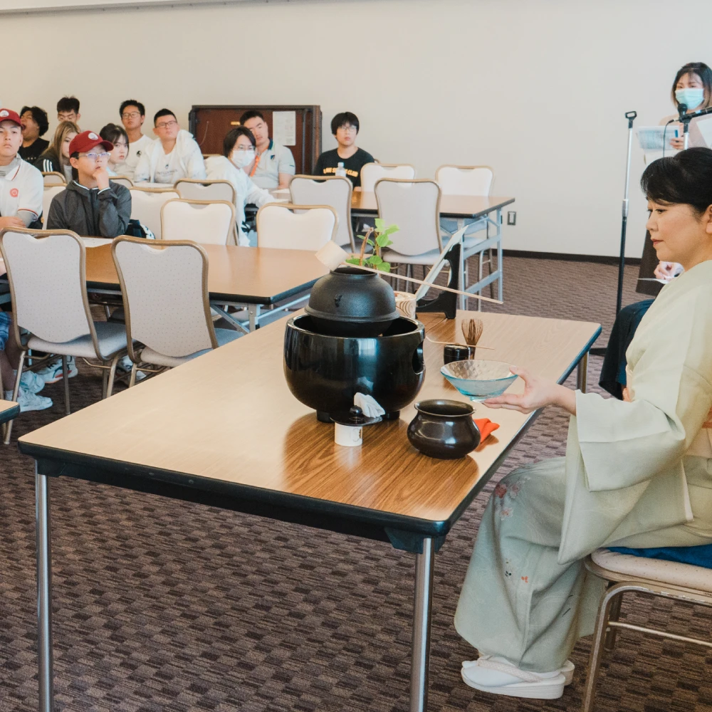 イベントスタイル:ホテルの宴会場で、ランチ前に茶道文化体験