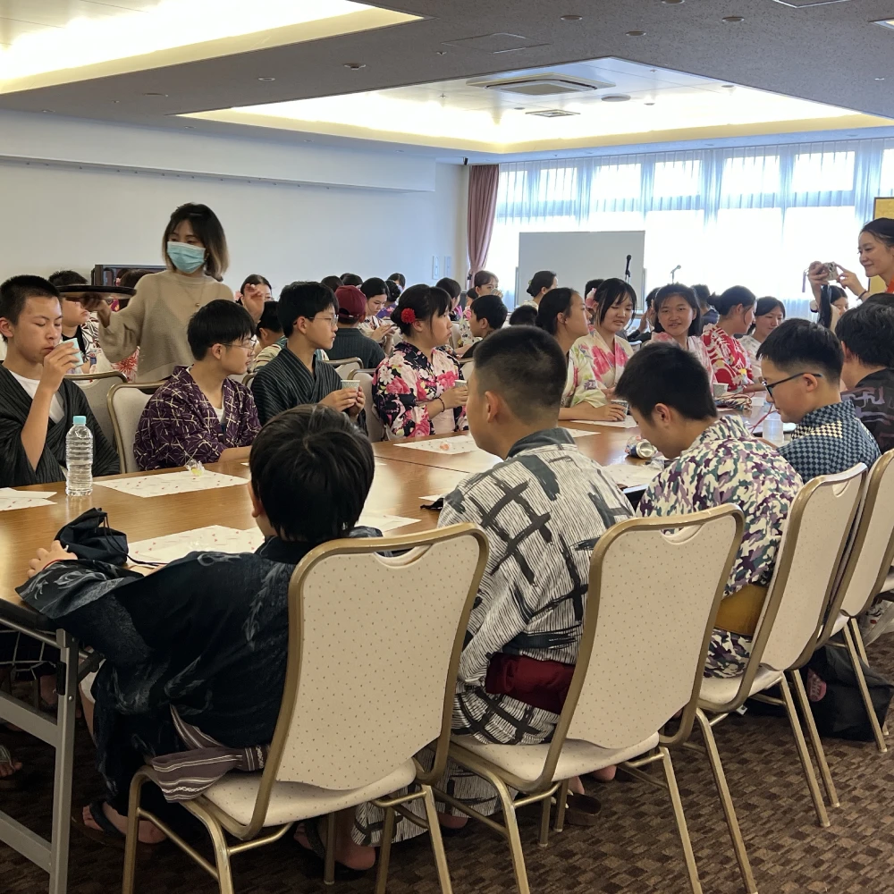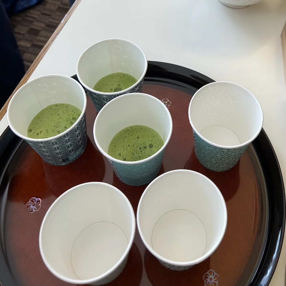 中国の小学生〜高校生までのお子様と保護者の方、133名+スタッフの方に、茶道文化の紹介(日本語&中国語の通訳付き)や茶道のお点前披露、お抹茶のご提供などをさせていただきました。2グループにわかれ、浴衣体験と茶道体験を交代で行う日本文化体験が、10日間の滞在で初日のプログラムだったようです。私の覚えたての中国語の自己紹介を笑って受け入れてくれて、終始楽しそうに参加してくれていたのが印象的でした。短時間に大勢様へのご提供でしたので、今回は紙コップでのご提供となりましたが、抹茶を残す方はおられず、お代わりのご希望があるほどでした。ご担当者様からは、「おかげさまで、初めて主催した大人数向けの茶道体験が無事に終わることができました。生徒たちと引率の教員からも「楽しかった」、「美味しかった」、「良い体験だった」と色々と良いフィードバックをいただくことができました。」というお声も頂戴いたしました。