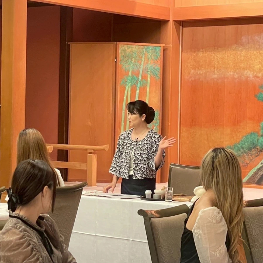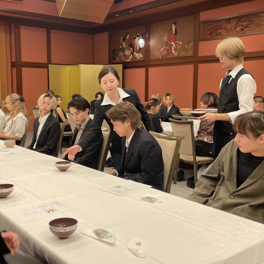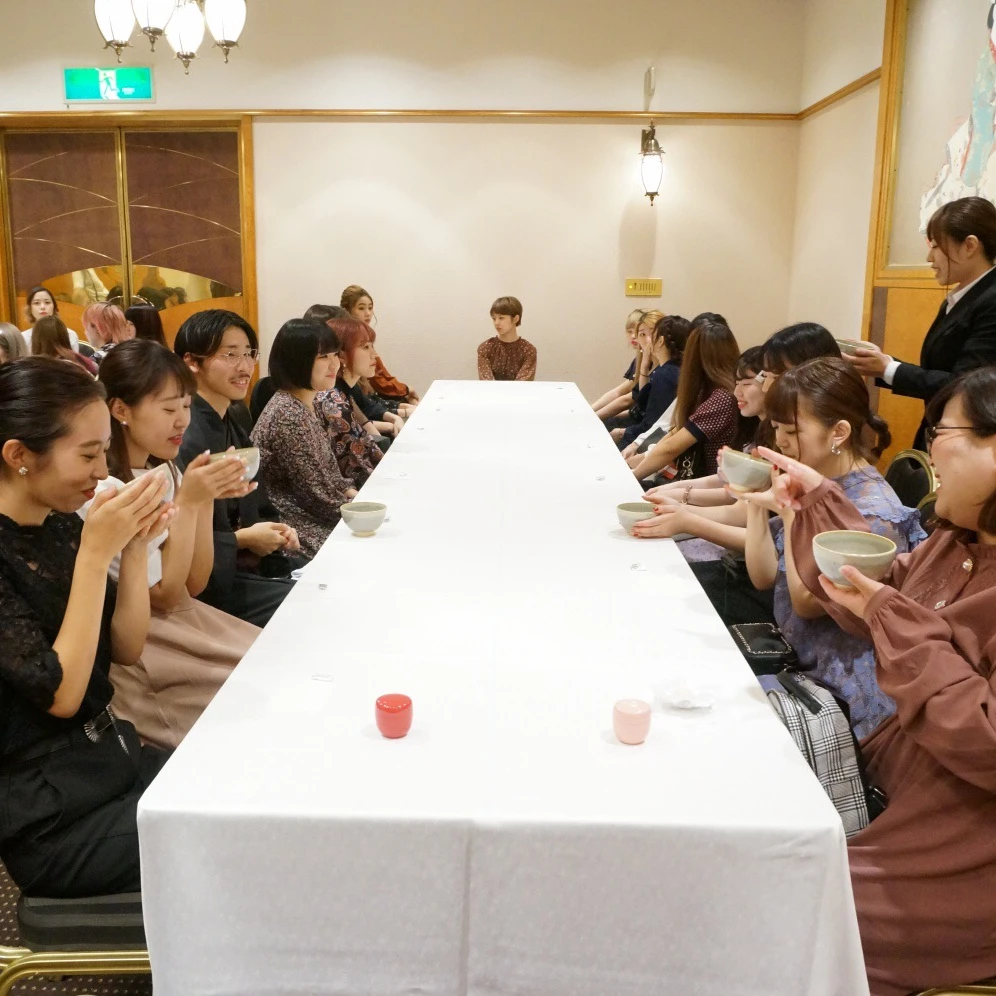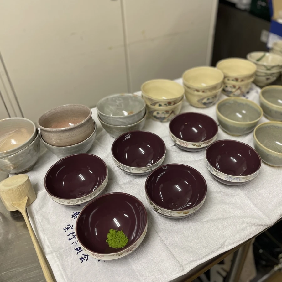 2017年から年に1度、リピートでご依頼いただいております、おもてなし総合学習の「テーブルで楽しむお抹茶講座」。2025年9月は、一回約70名前後の学生さんに向けた40分講座を、1日計6回、開催しました。ここ数年は、1年生全員の必須科目としてご受講いただいております。 毎年、2年生が「お抹茶を点てて出すなどのホスト役」、1年生が「お抹茶を飲むなどのゲスト役」は欠かさず組み込み、その他の内容は毎年工夫と改善を繰り返し、そしてその時々の学生さんの反応を見ながらライブ感を大切に組み立てております。
