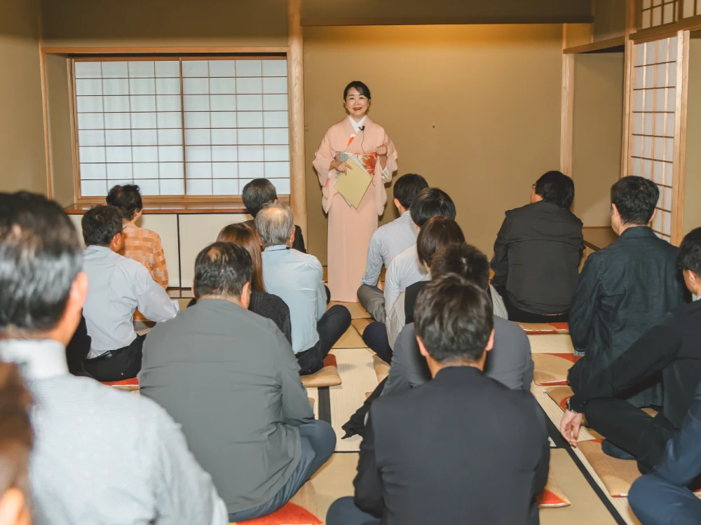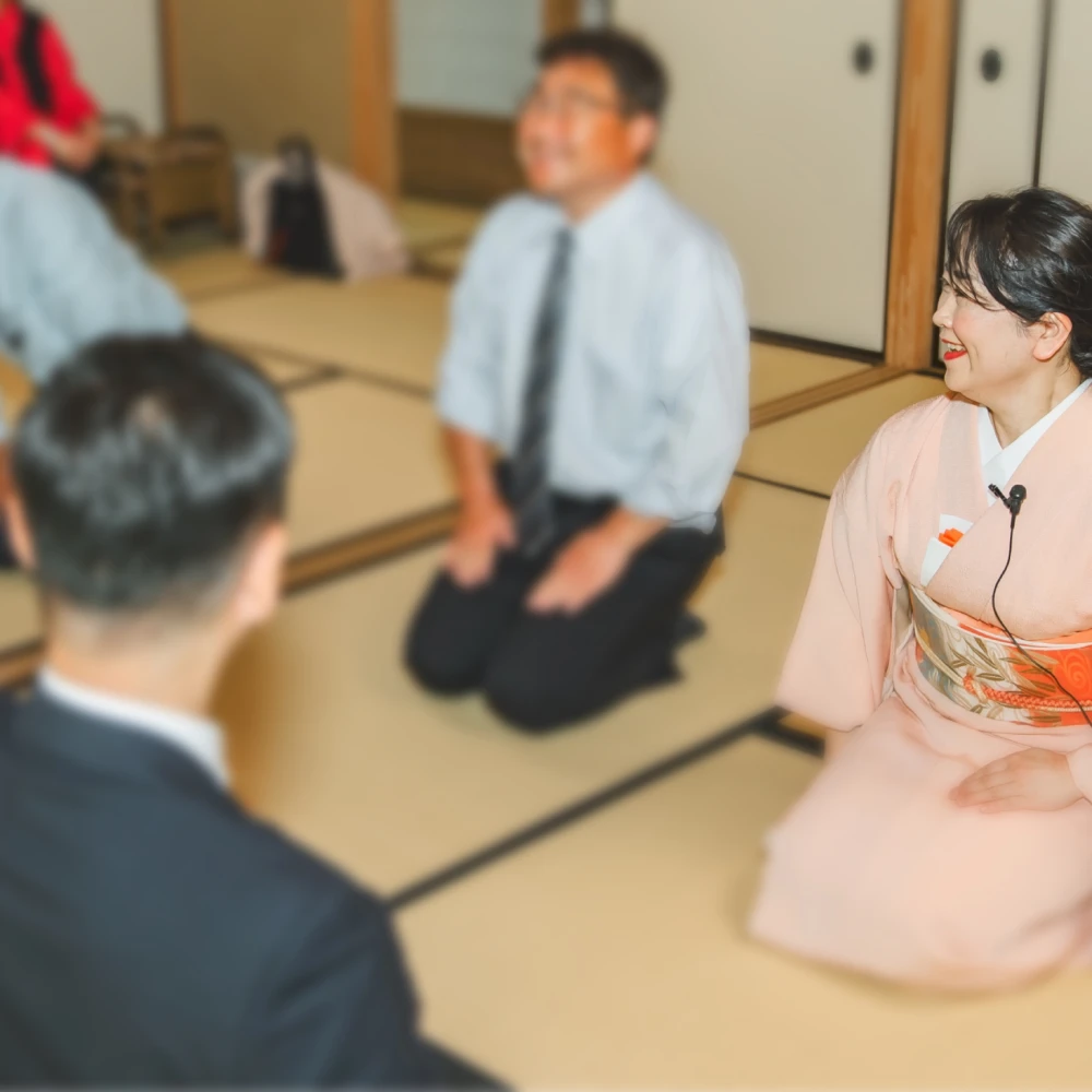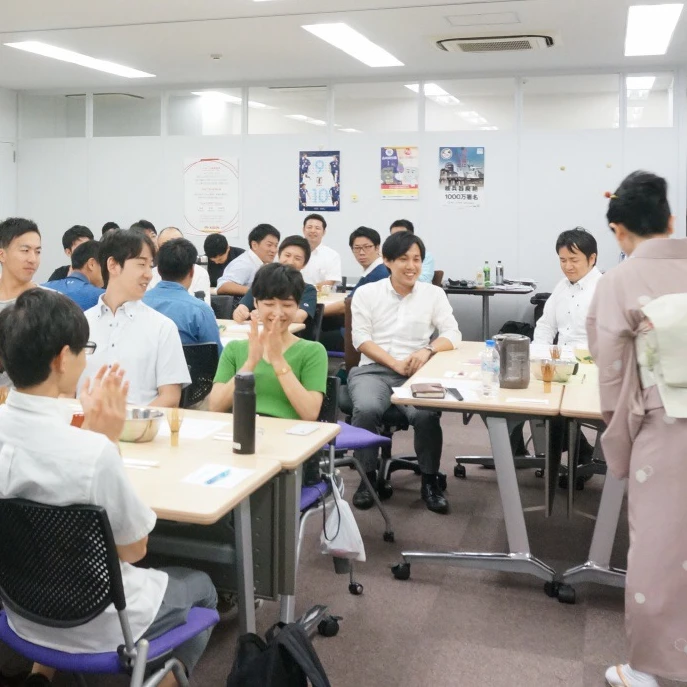 ご担当者様からは、「様々な好印象の意見をもらい、ご依頼させていただき、実施できてよかったです。心配していたマイナスの反応は一切ありませんでした。」「個人的にも、組合としても非常に楽しめた会でした。本音のところを申しますと、果たして盛り上がるのか不安なところも多分にあったのですが、先生の取り回しと何より茶道の魅力が、皆さんを満足させてくれたと実感しました。」と嬉しいお声もいただきました。